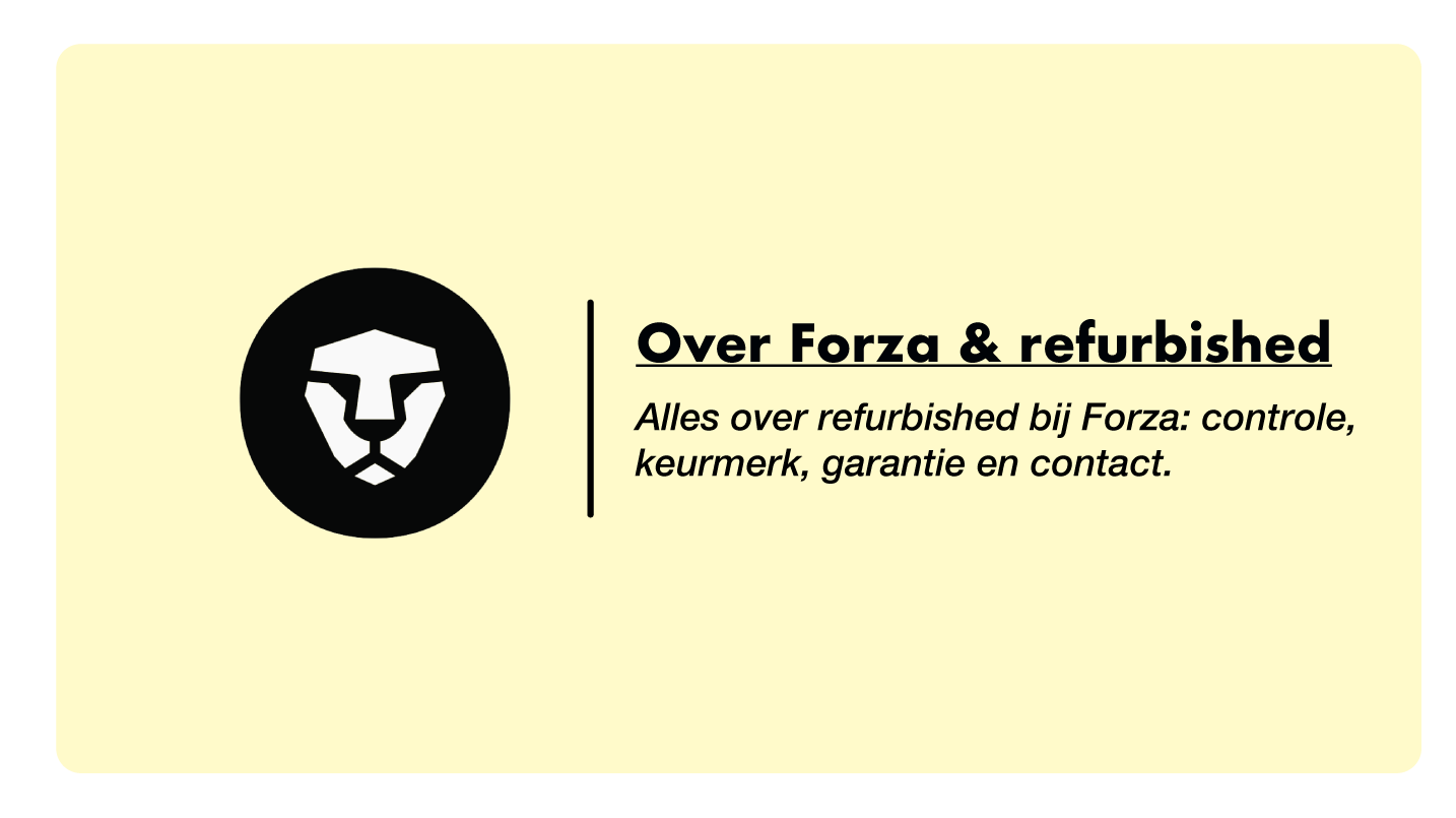 Elke refurbished iPhone, iPad, Apple Watch of MacBook kun je bij Forza kopen in de productcondities zo goed als nieuw, licht gebruikt en zichtbaar gebruikt. Dit gaat enkel om het uiterlijk. Van binnen is elk refurbished device 100% functioneel en evenaart het de kwaliteit van nieuw. Je leest en ziet er alles over op onze productconditie-pagina.